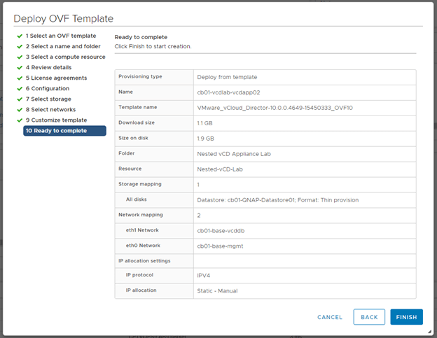 End – I’ll finish this blog post here. In my next blog, I’ll walk through the steps of configuring the newly deployed vCloud Director environment. Stay tuned.