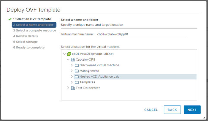 2 – Name the VM, select the datacenter and virtual machine folder.
