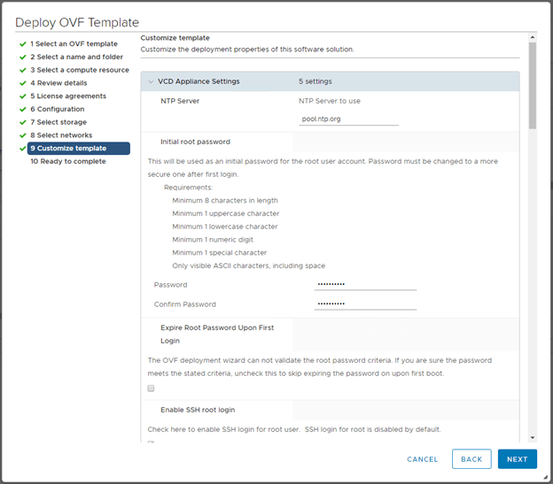 9 – Before starting the appliance, it may be a good idea to take a snapshot. Once the appliance has been started, and the configuration scripts attempt to run and fail, the appliance will need to be redeployed. I’d also take a snapshot of the primary appliance, to roll back any failed attempts to join.