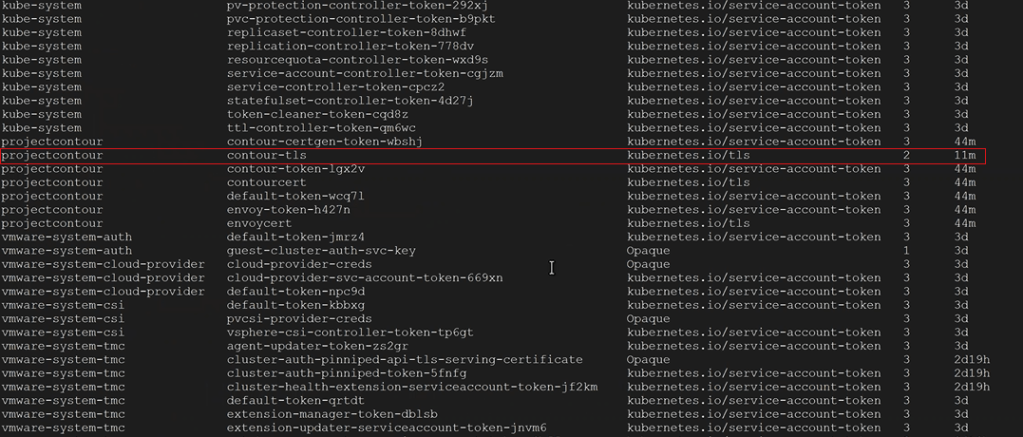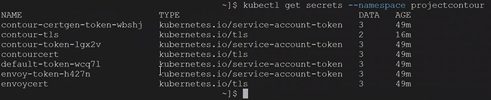 kubectl get secrets --namespace projectcontour
