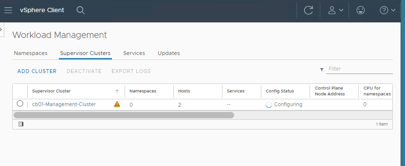 After the deployment completes successfully, there will be a notification bar across the top “TKG plugin has been added”, asking to refresh the browser. After the screen refresh, you should see a config status of Running.