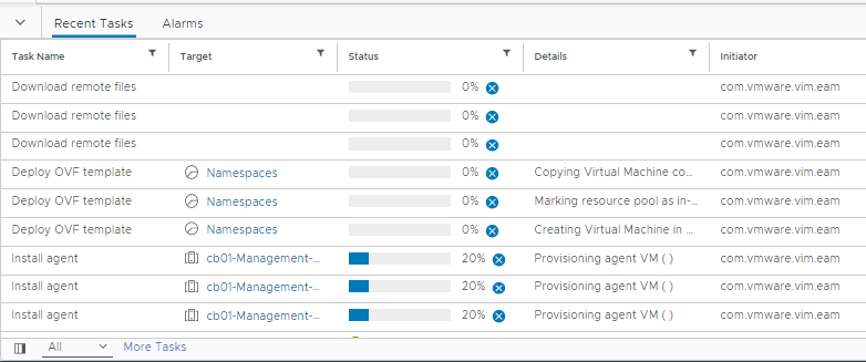 In the vCenter recent tasks window, you should start seeing some deployment activities.