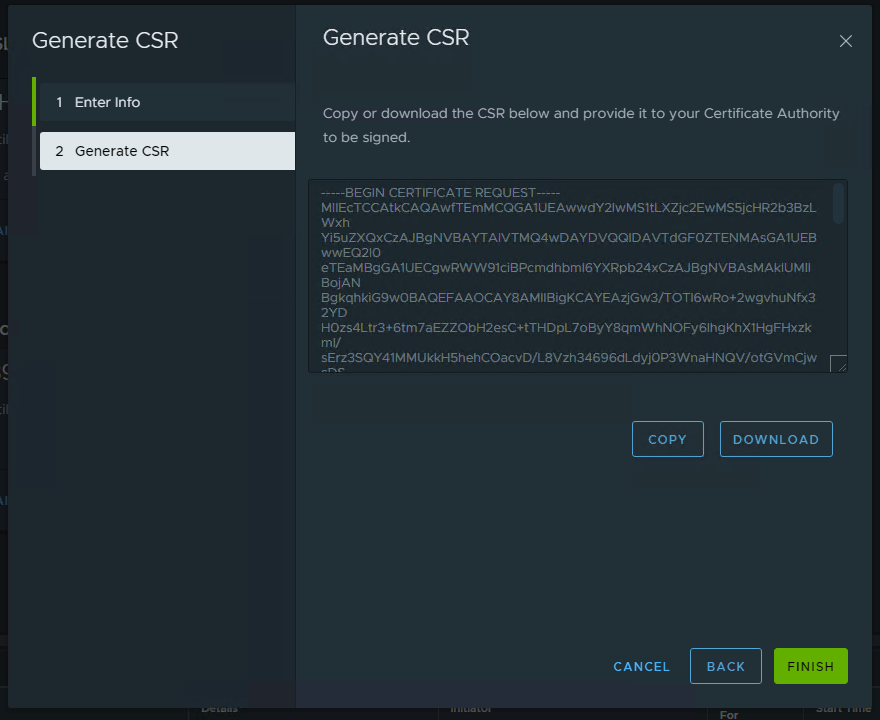 6. You can COPY or DOWNLOAD the CSR. In this example, click COPY and then click finish.