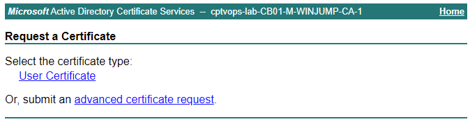 7. Now we need to connect to the Microsoft CA web portal. Click “Request a Certificate”.