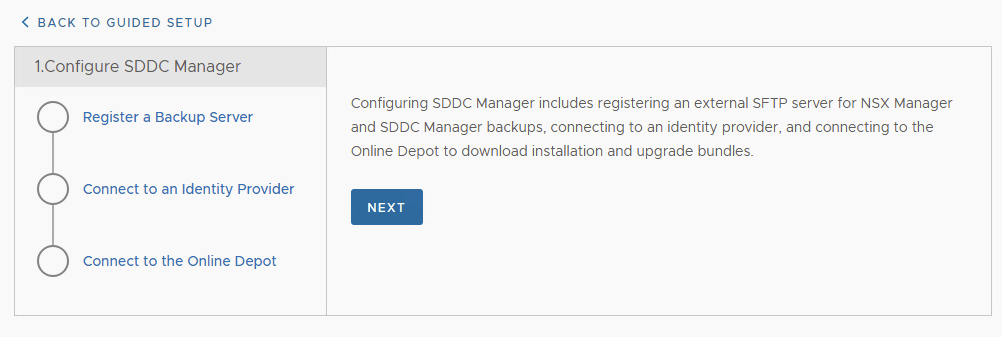 On the next screen, we’ll want to continue with Step 2 Configure SDDC Manager. Click VIEW DETAILS.