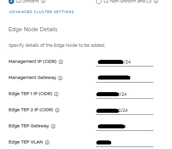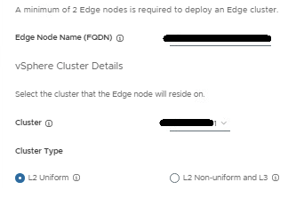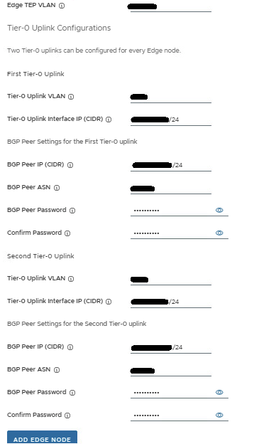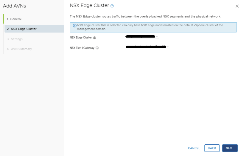 In the NSX Edge Cluster drop menu, select the management edge cluster. In the NSX Tier-1 Gateway drop menu, select the gateway. Click NEXT.