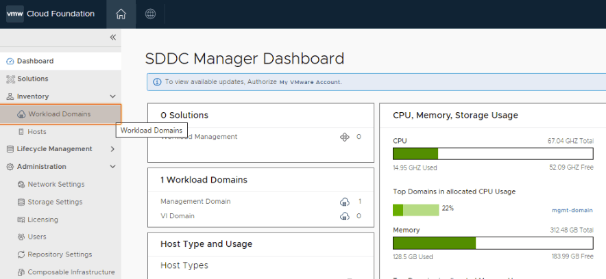 For this, click workload domains.