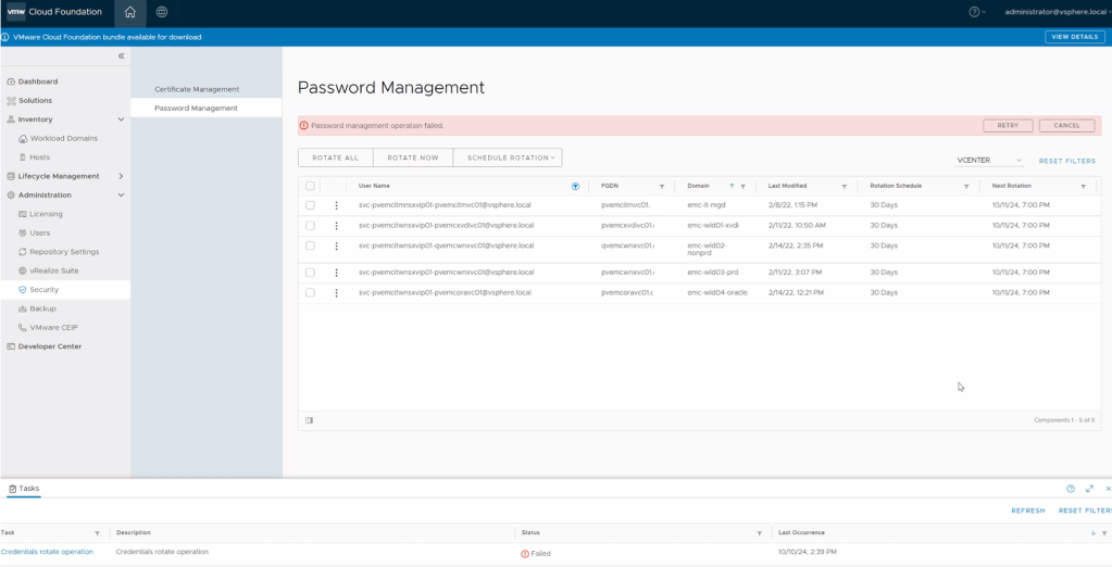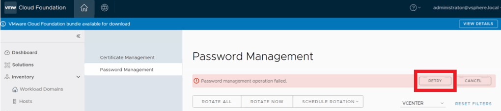 - Log into SDDC Manager