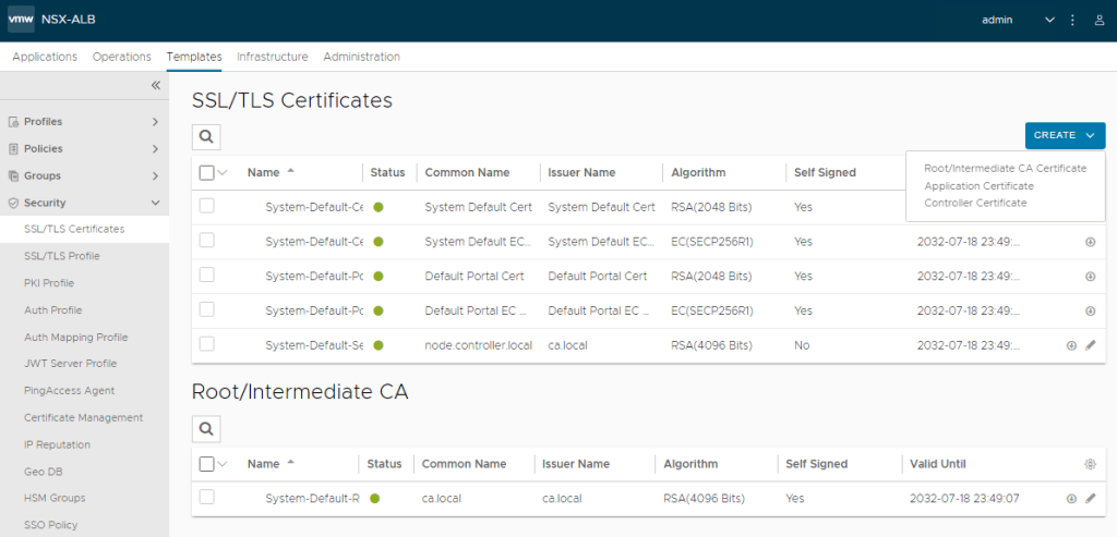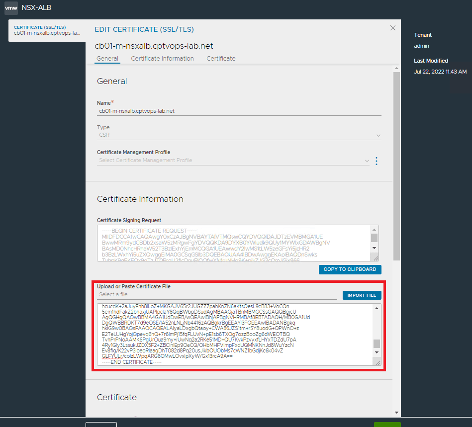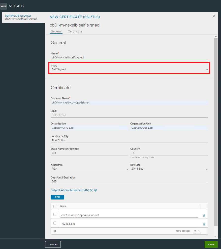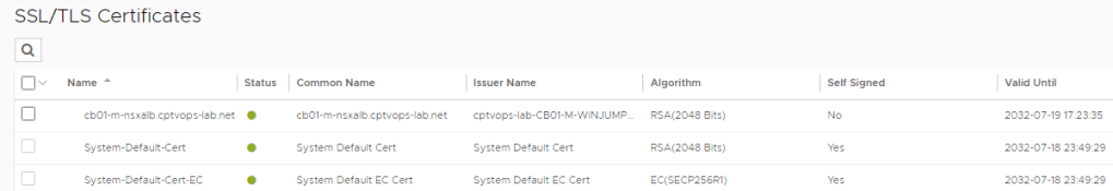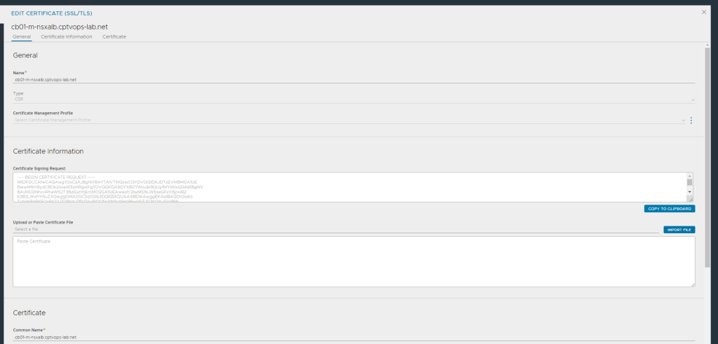 Now we need to update the NSX-ALB SSL certificate. We can either use a self signed certificate, or we can create a CSR and sign the certificate with a CA. In my lab, I have applied the signed CA certificate.