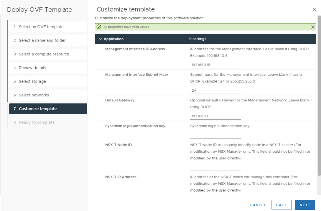 Refer to the spreadsheet, and fill in the details for the management network. Remember the control plane needs a block of 5 consecutive IP addresses.