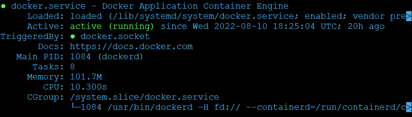 Let’s run the following command to see the Docker path. We should get a return /usr/bin/docker