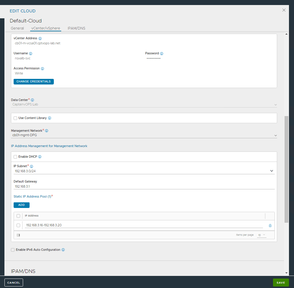 Next, we need to make sure that the NSX ALB knows which IPs it should use, so we need to setup an IPAM as well.