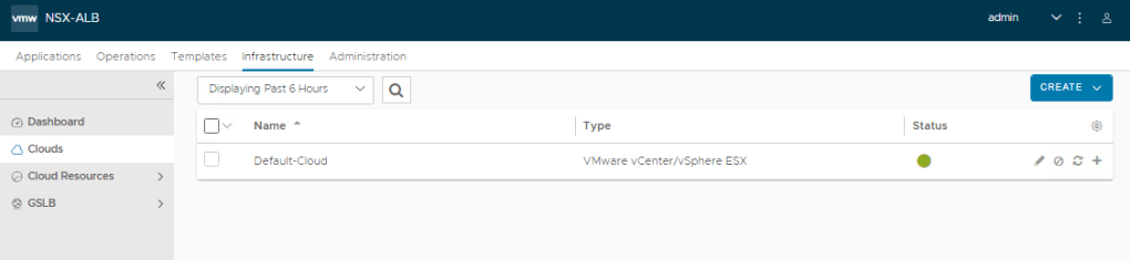 Click on the Infrastructure tab, then select Clouds in the left menu. We see the controller comes with a default cloud already configured, and we can edit this for our needs. To the right of the green dot, you’ll see several icons. Click the gear to the right of the pencil.