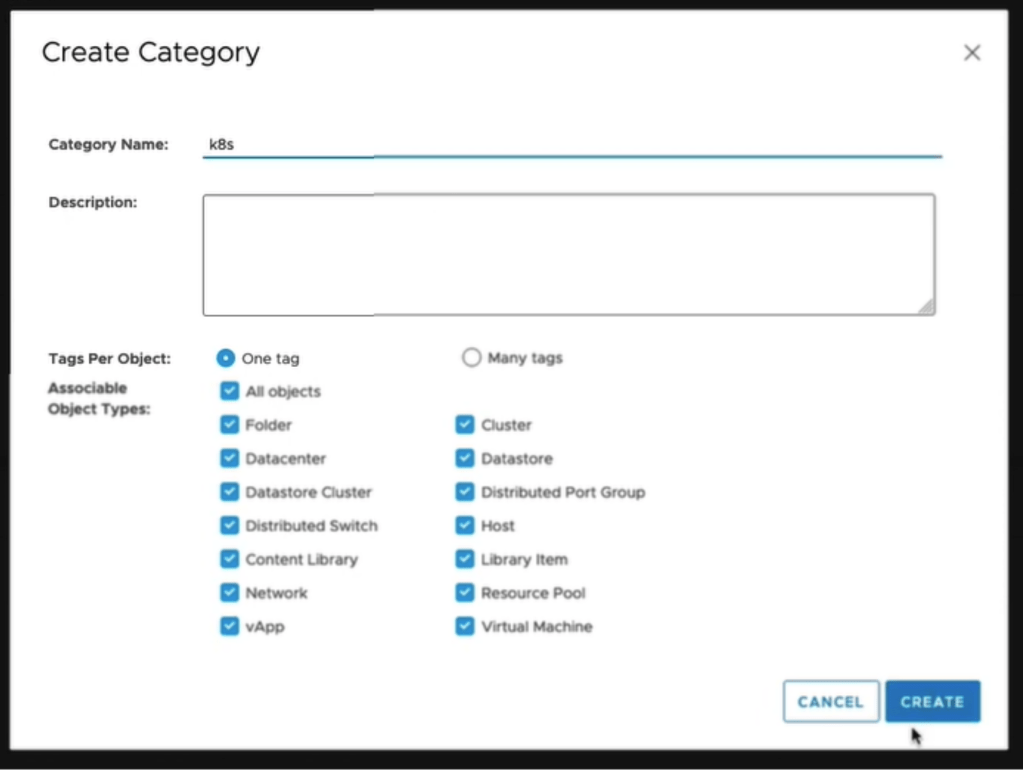 5 – Click the Create New Category, and give it a name. In this example we used: k8s Leave all other defaults, and click CREATE.